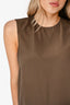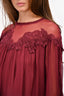 Chloe Green Silk Deep V Long Sleeve Pleated Lace Detail Dress Size 36