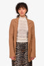Chloe Brown Ribbed Wool/Cashmere Open Collared Cardigan Size M