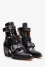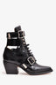 Chloe White Patent Leather Pointed Cut-Out Buckle Detail Block Heel Boots Size 36