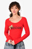 Love Moschino Red Wool Knit 'Love Moschino' Studded Sweater Estimated Size S