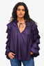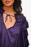 Alexis Dark Purple Lace Black Satin Bow Detail Long Sleeves Mini Dress Size S