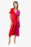 Natalie Martin Red/White Floral Pattern Silk Maxi Dress with Belt Size O/S