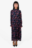 Ganni Black Floral Maxi Chiffon Pleated Dress Size 36