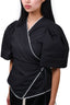 Ganni Black Cotton Contrast Stitch Wrap Top Size 42