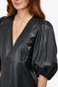 Ganni Black Leather Puff Sleeve Dress Size 38