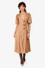 Ganni Beige Puff Sleeve Button Midi Dress Size 34