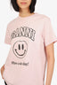 Ganni Baby Pink Smiley Face Logo T-shirt Size XX-Small