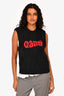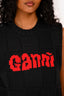 Ganni Black Cotton Blend Red Logo Knit Top Size S