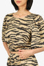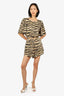 Ganni Beige/Black Leopard Print Ruched Long Sleeve Dress Size 38
