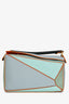 Loewe 2017 Blue Acid Wash Leather Trimmed Medium Puzzle Bag