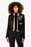 Prada 2010 Black Leather Cropped Logo Jacket Size 42