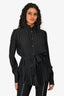 Prada 2017 Black Silk Pleated Tie Around Button Up Shirt Size 40