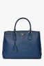 Prada 2015 Navy Blue Saffiano Leather Large Double Zip Galleria Tote with Strap