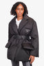 Prada 19 Runway Black Triangle Rubber Logo Jacket Size 38