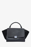 Celine 2015 Black Grained Leather/Suede Small Trapeze Top Handle with Strap