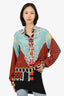 Versace Blue/Black Ribbed Knit Long Sleeve Crop Top Size 38