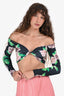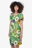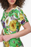 Christian Dior Green/Black Silk Printed Draped Short Sleeve Midi Dress Size 14