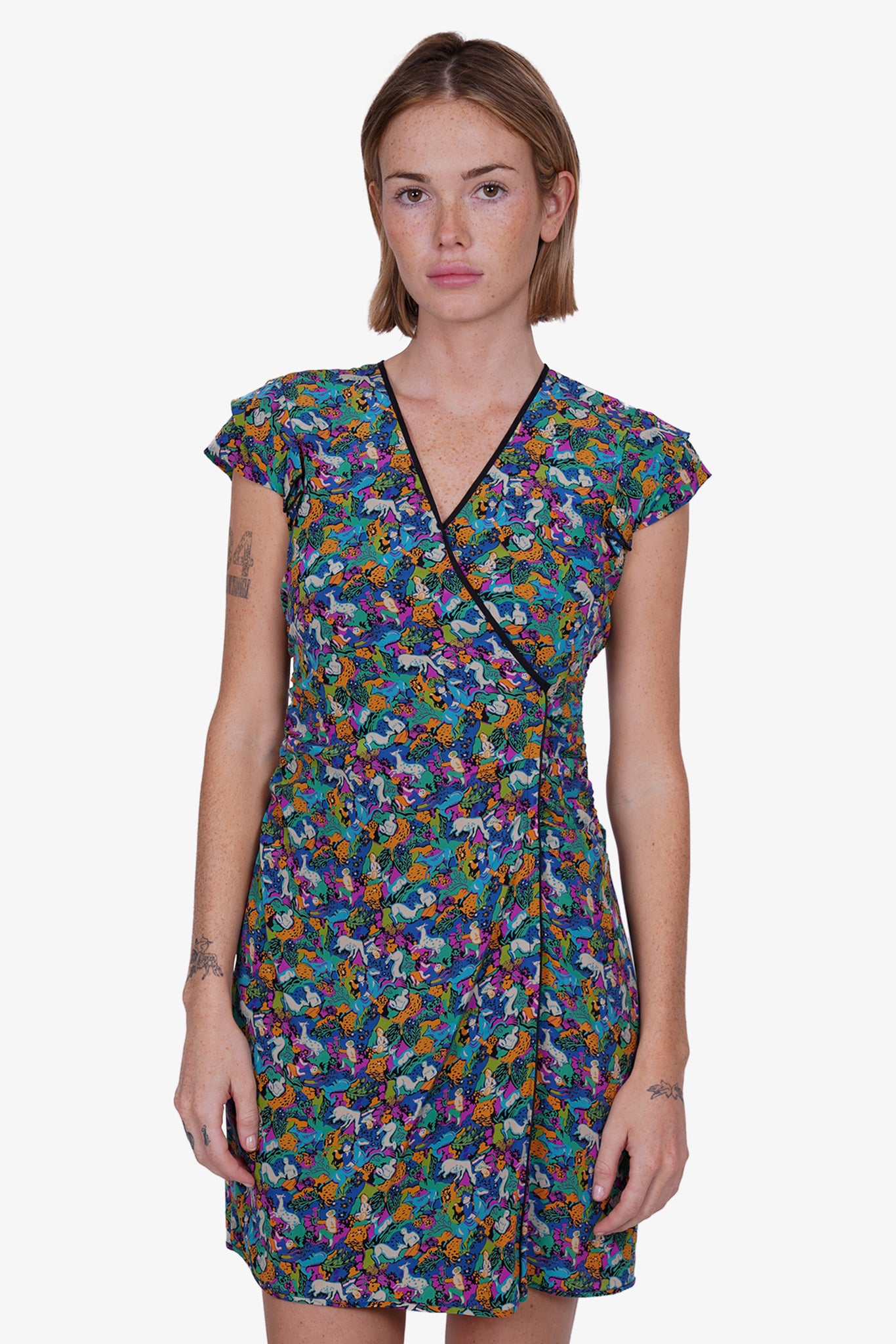 Max Mara Blue/White Zebra Printed Long Sleeve Trench Style Wrap Dress Size 12