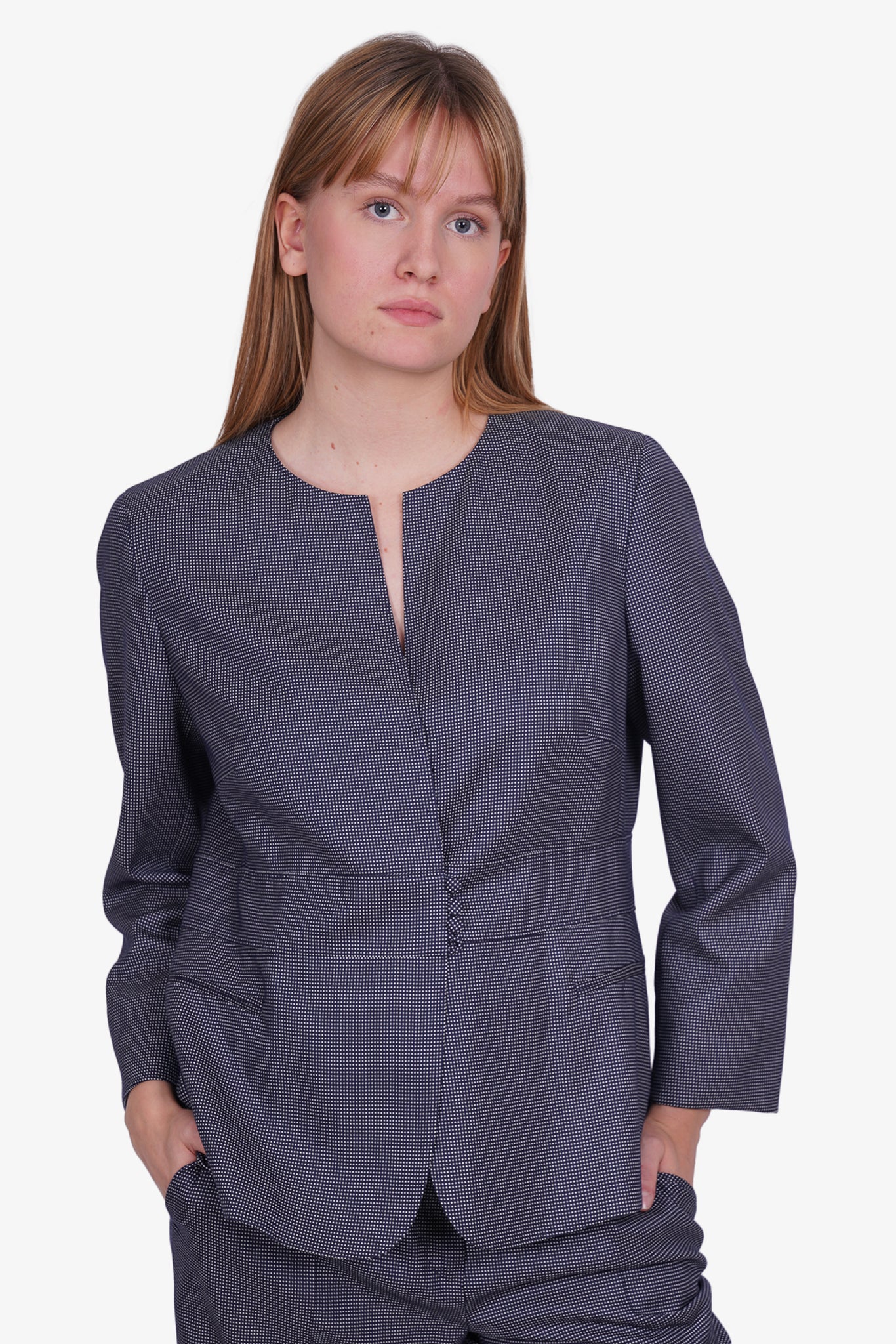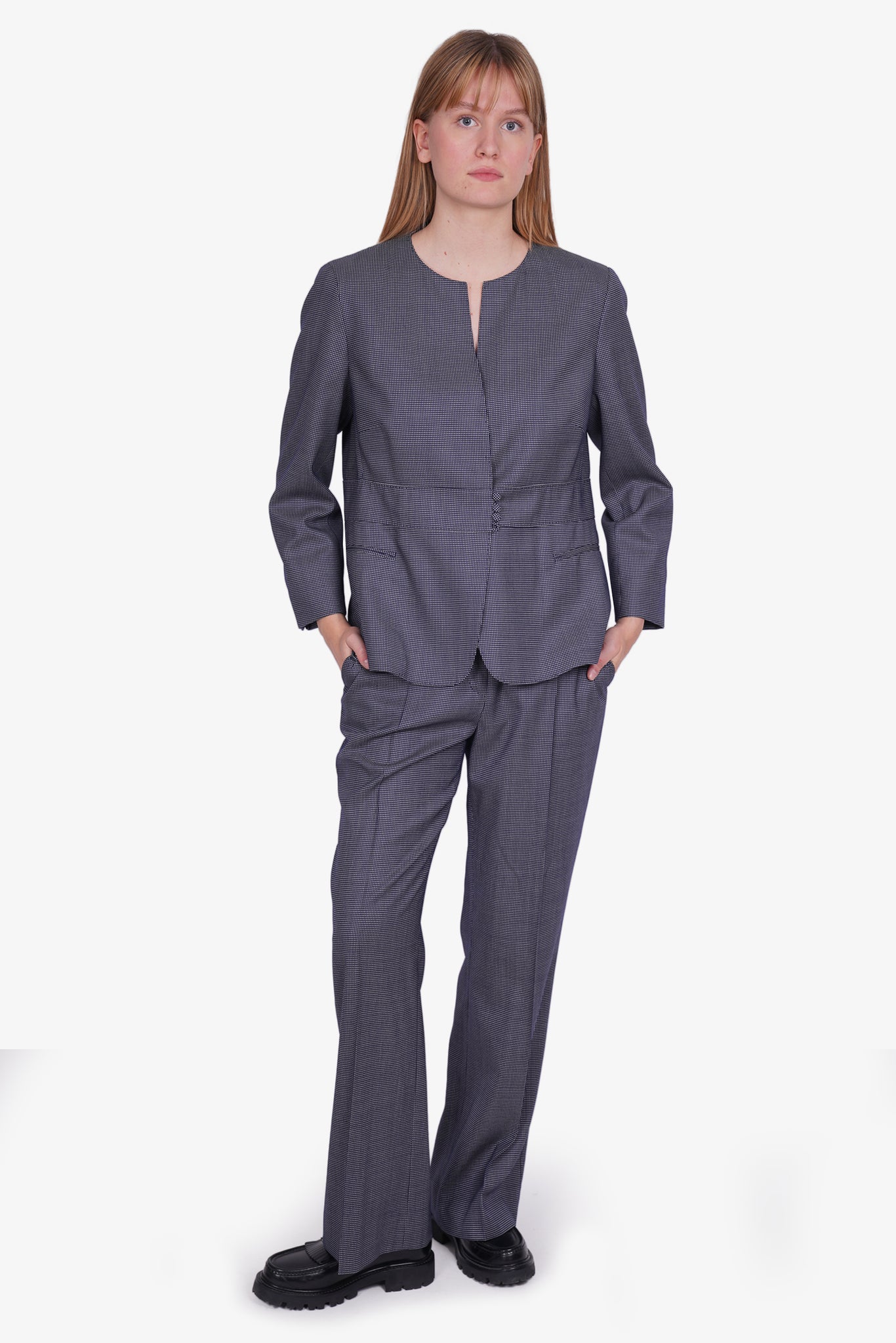 Max Mara Navy Pinstripe Virgin Wool SIngle Breasted Blazer + Trousers Set Size 8