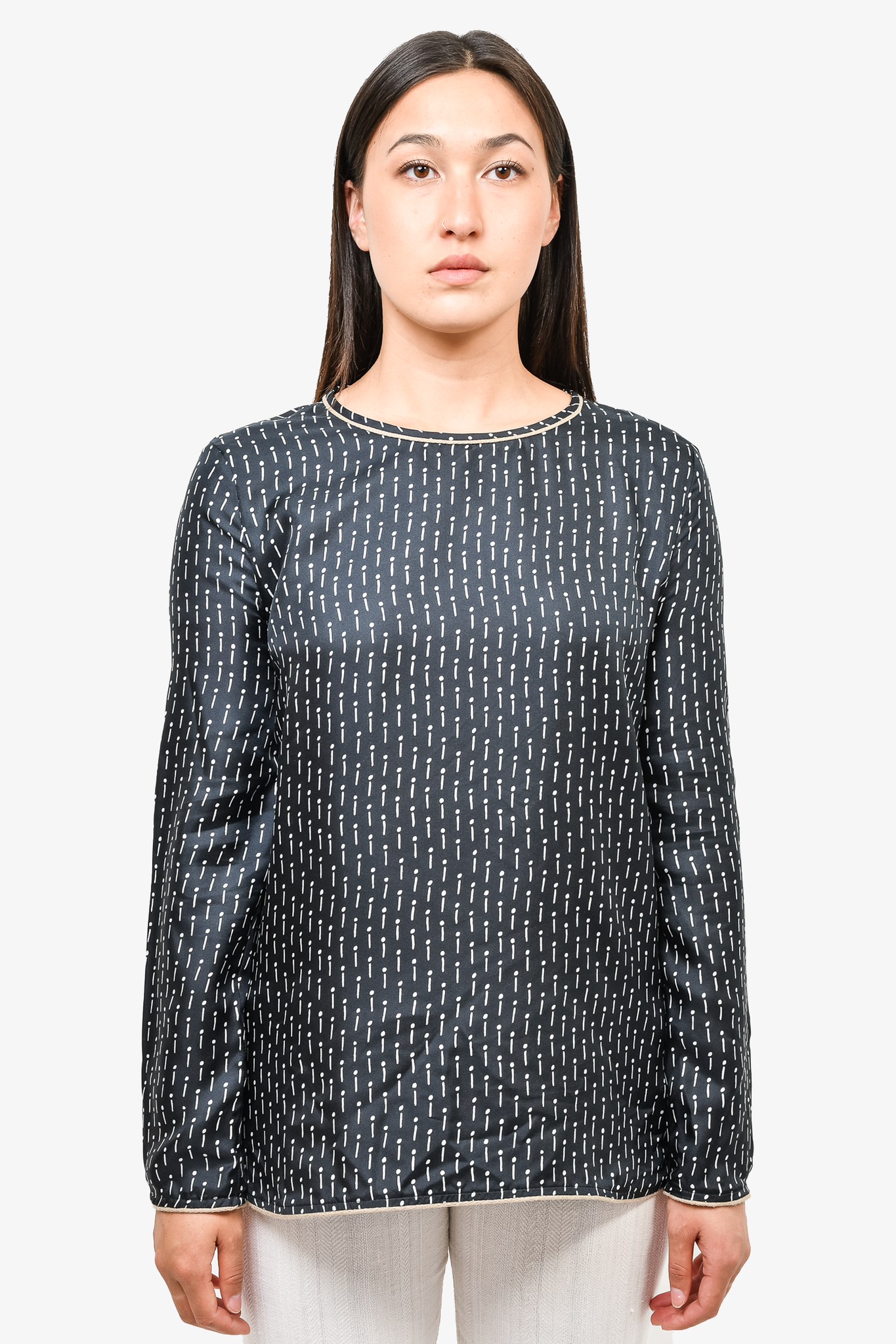Weekend Max Mara White/Blue Cotton Floral Printed Long Sleeve Sweater Size XL w/ Tags