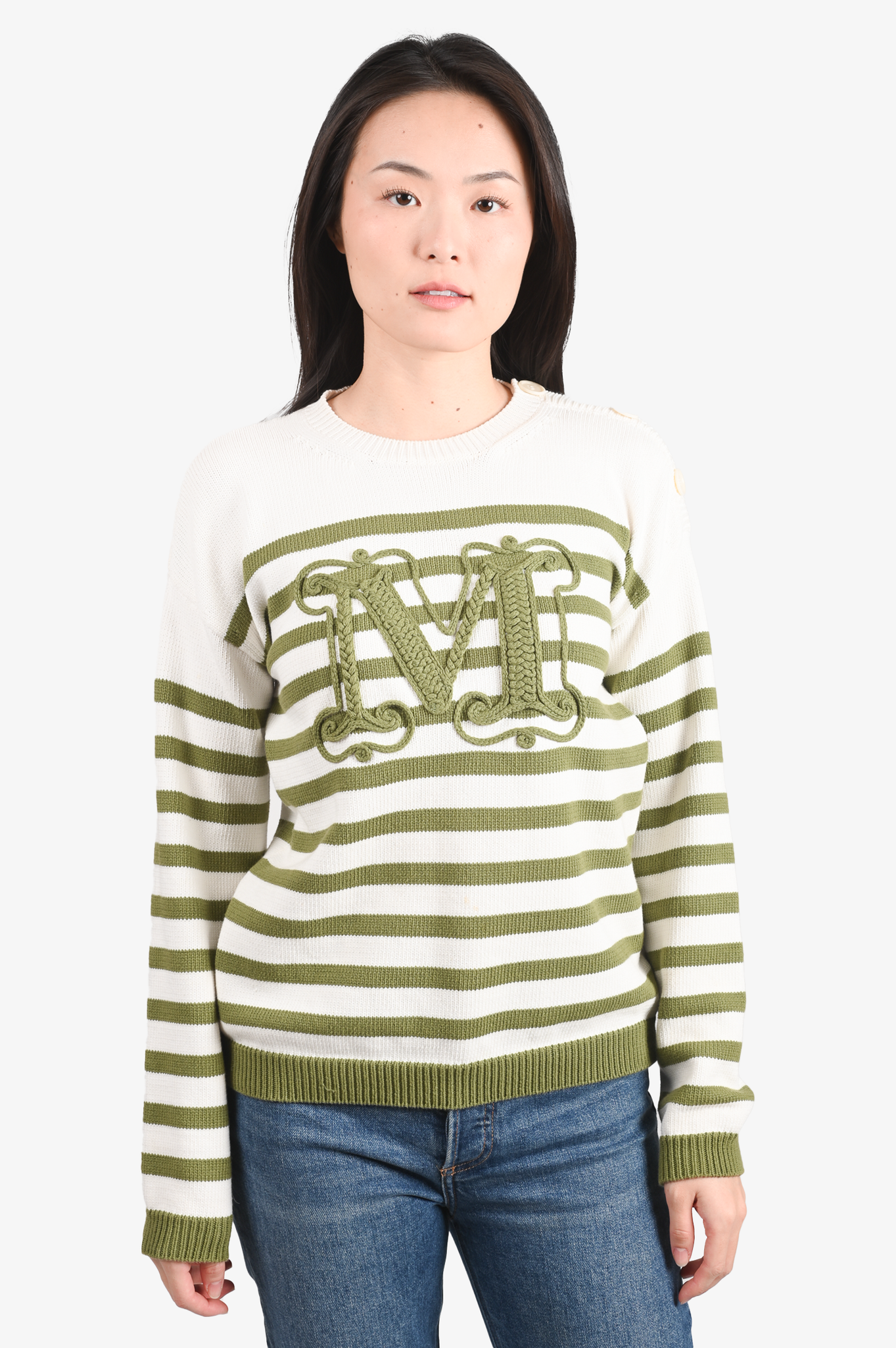 Weekend MaxMara Cream Knit Long Sleeve Perforated Detail Sweater Size L