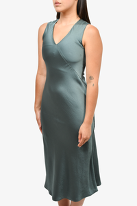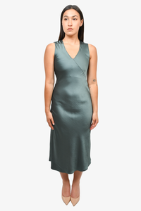 Matteau Khaki Green Silk Sheer Tiered Maxi Dress Size 6