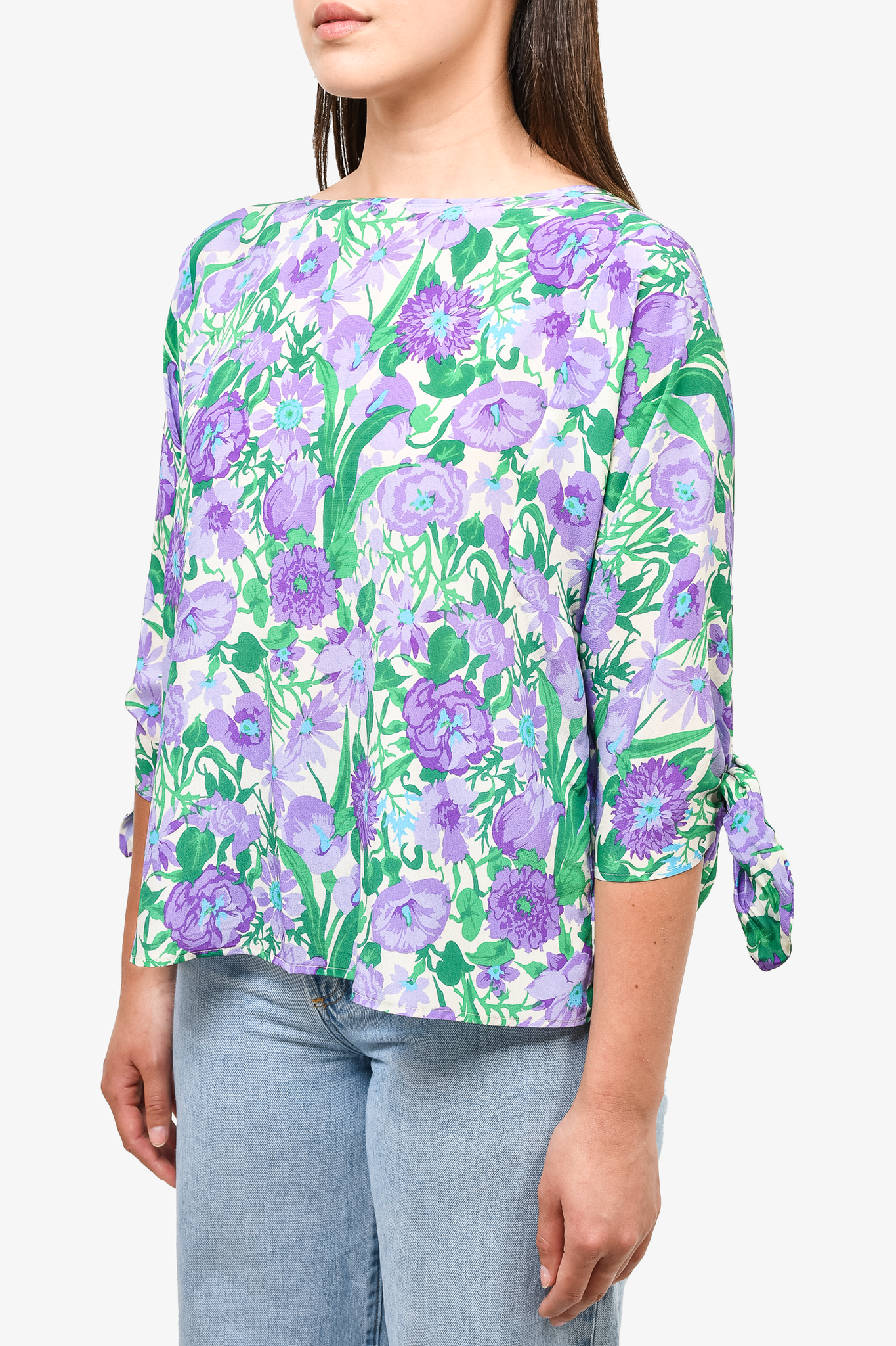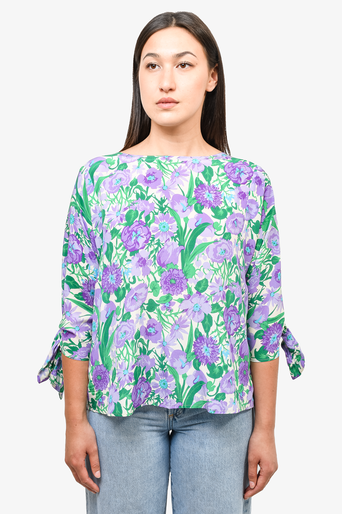 Max Mara Green Silk Floral Mock Neck Top Size 8
