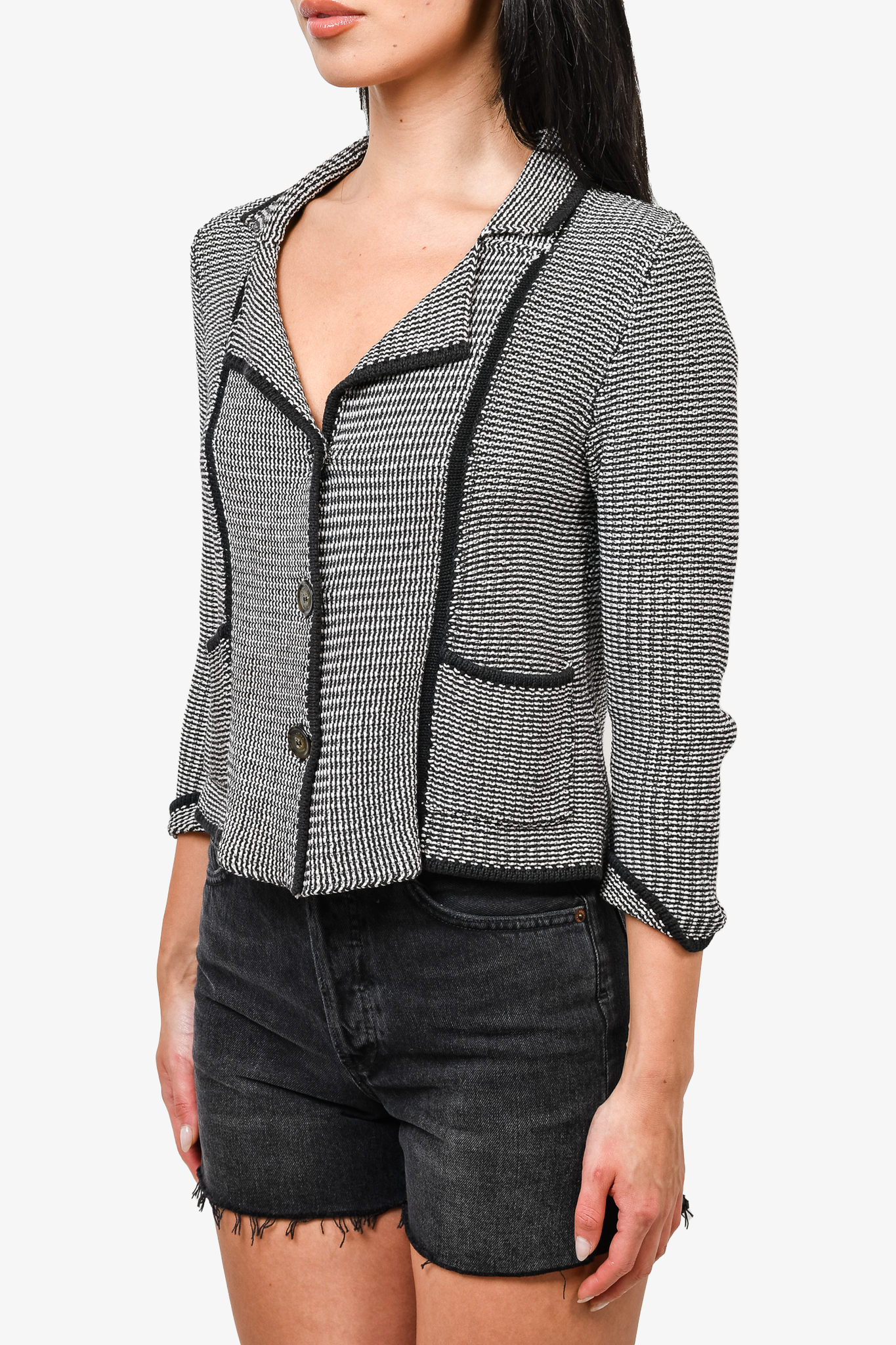 Max Mara Black/White Wool/Cashmere Houndstooth Cardigan Size XS