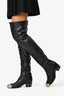 Pre-Loved Chanel™ Black Patent Leather/Nylon Lace-Up Boots Size 38