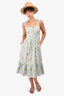 Miu Miu Silver/Green Floral Jacquard Crystal Button Up Maxi Dress Size 38