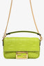 Fendi 2022 Green Leather Nappa FF 1974 Mini Baguette with Strap