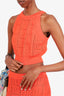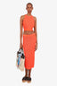 Balmain Orange Zucca Print Midi Skirt + Crop Top Set Size 40