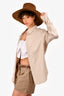 Fendi 2022 White/Beige Graphic Linen V-Neck Pocket Blouse Size 42 w/ Tags