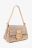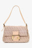 Fendi Beige FF Zucchino Double Flap Baguette Shoulder Bag