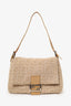 Fendi Beige Zucca Baguette Shoulder Bag with Fur Buckle