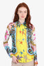 Versace Lilac/Green Psychedelic Print Long-Sleeve Button Up Blouse Size 44