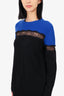 Red Valentino Black/Blue Wool Ribbed Lace Detail Sweater Size S