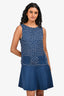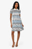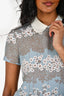 Red Valentino Blue Ribbed Dress With Floral Embroidery Size S