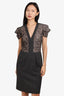 Red Valentino Black/Grey Lace V-Neck Short-sleeve Dress Size 42