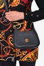 Versace Black Leather "Greca" Foldover Crossbody with Extra Chain Strap
