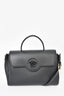 Versace Black Leather 'Medusa Medallion Satchel' Top Handle Bag with Strap