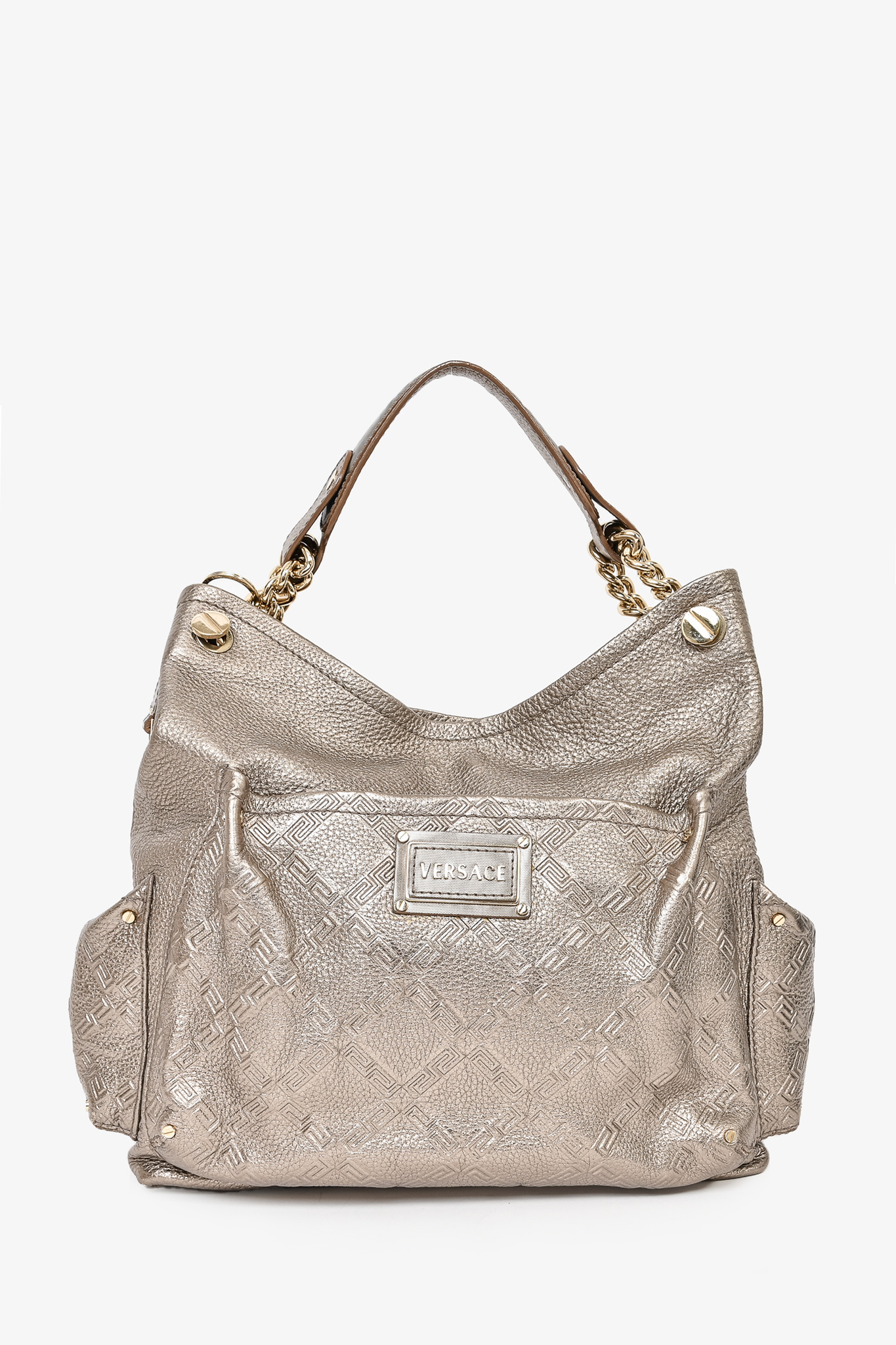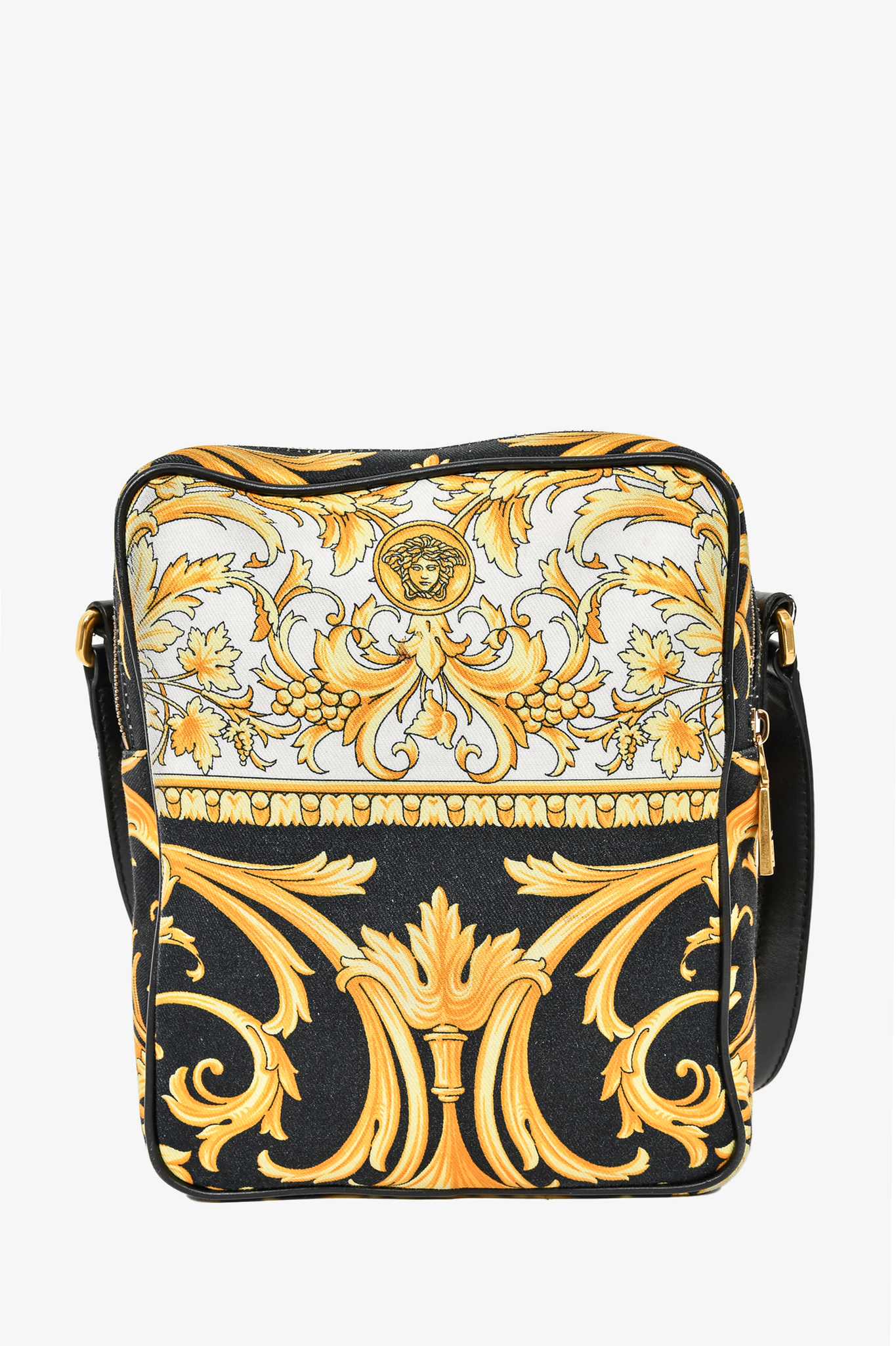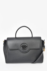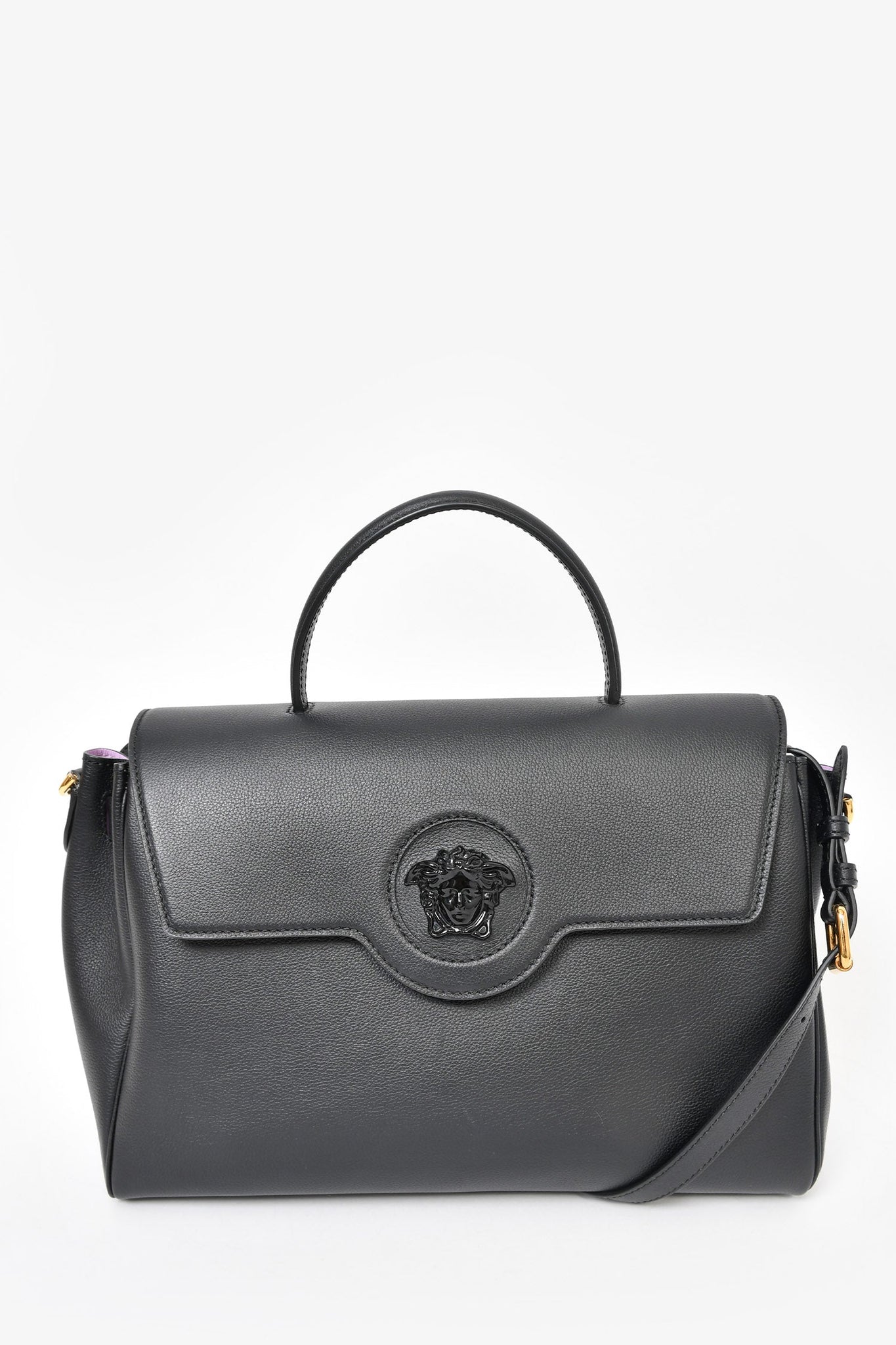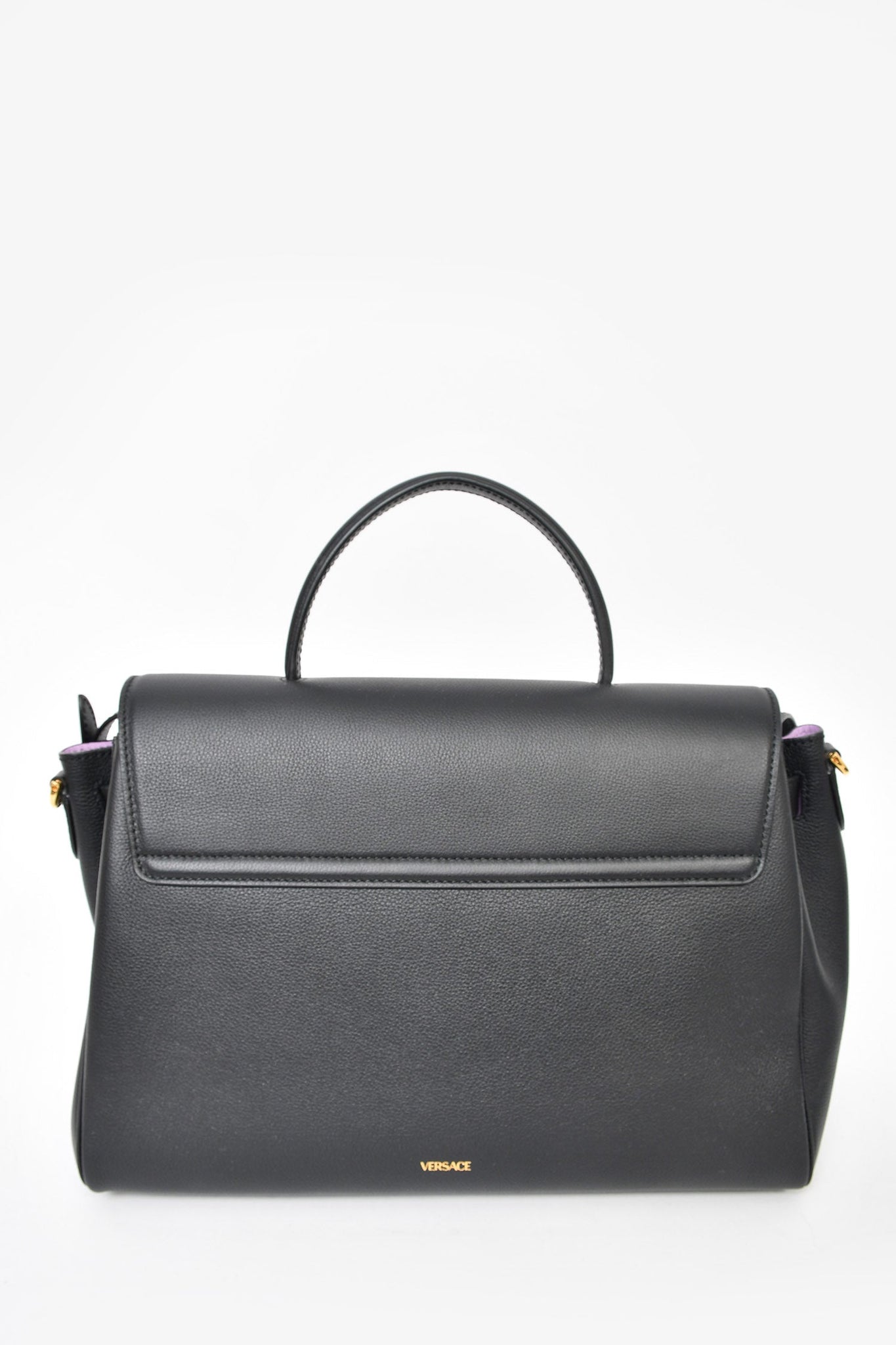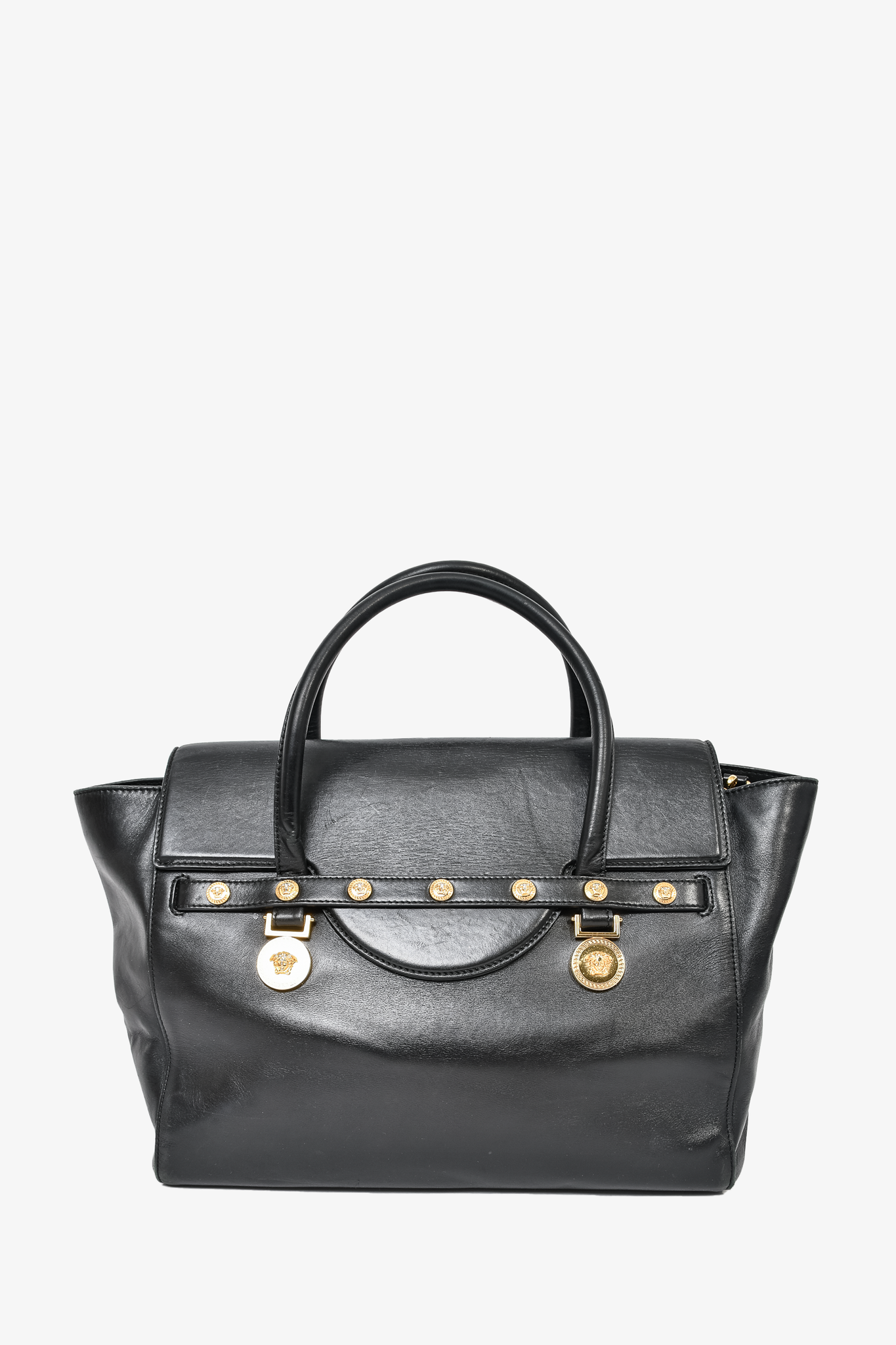 Fendi x Versace Black Leather/Zucca Top Handle Bag with Strap