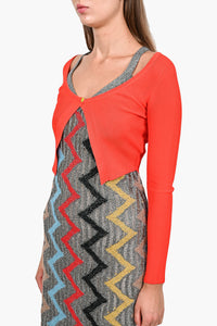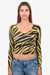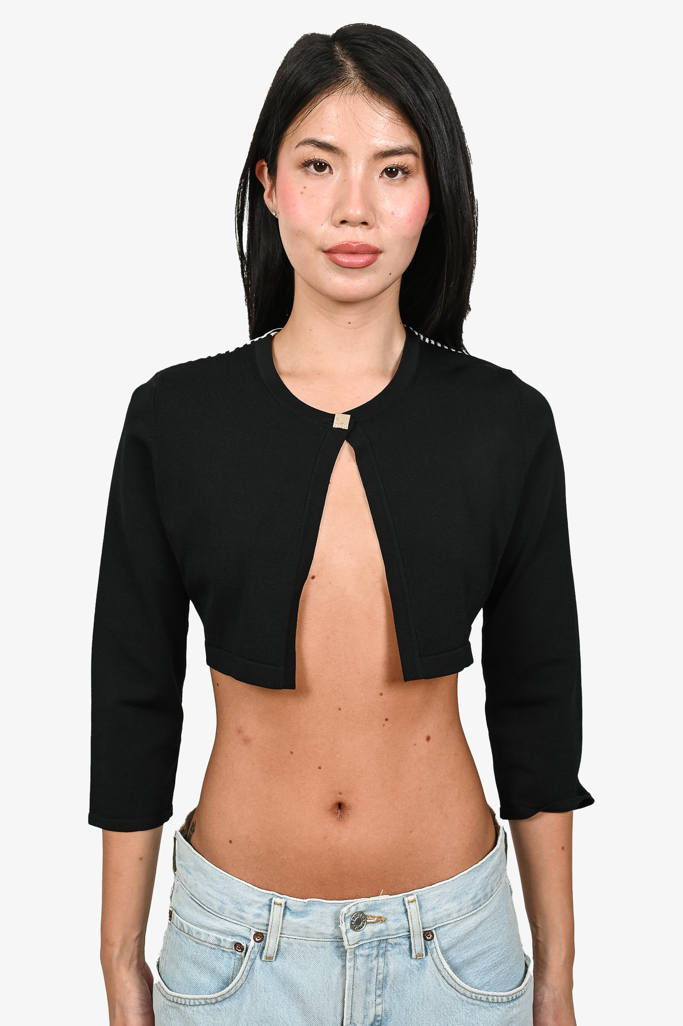 Versace Blue/Black Ribbed Knit Long Sleeve Crop Top Size 38