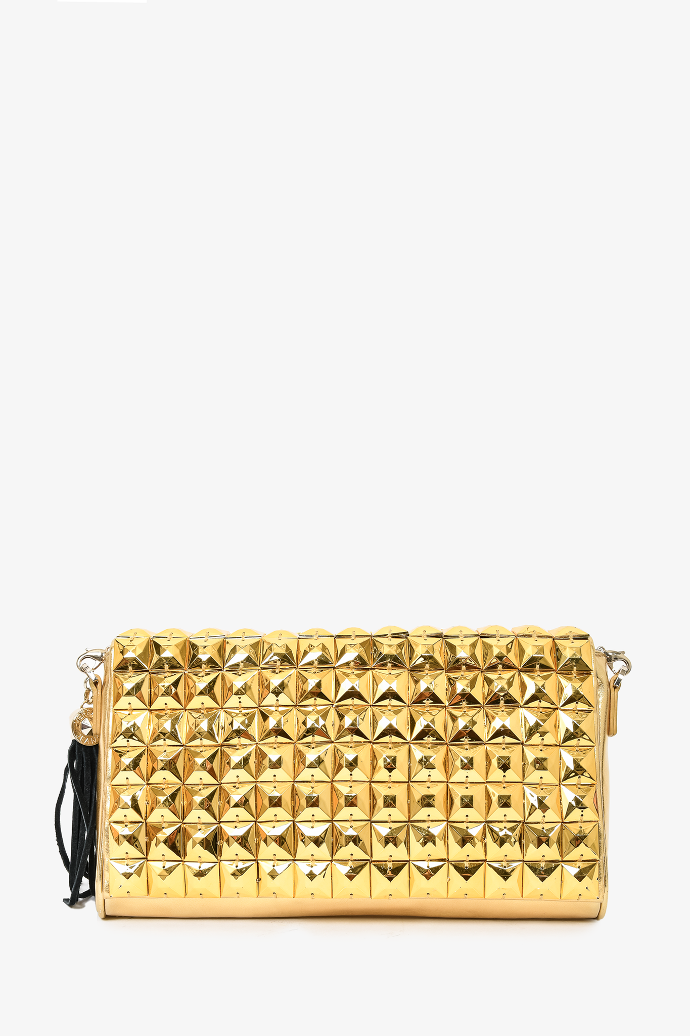 Versace Gold Tone Metal Crystal Embellished Ear Hoops