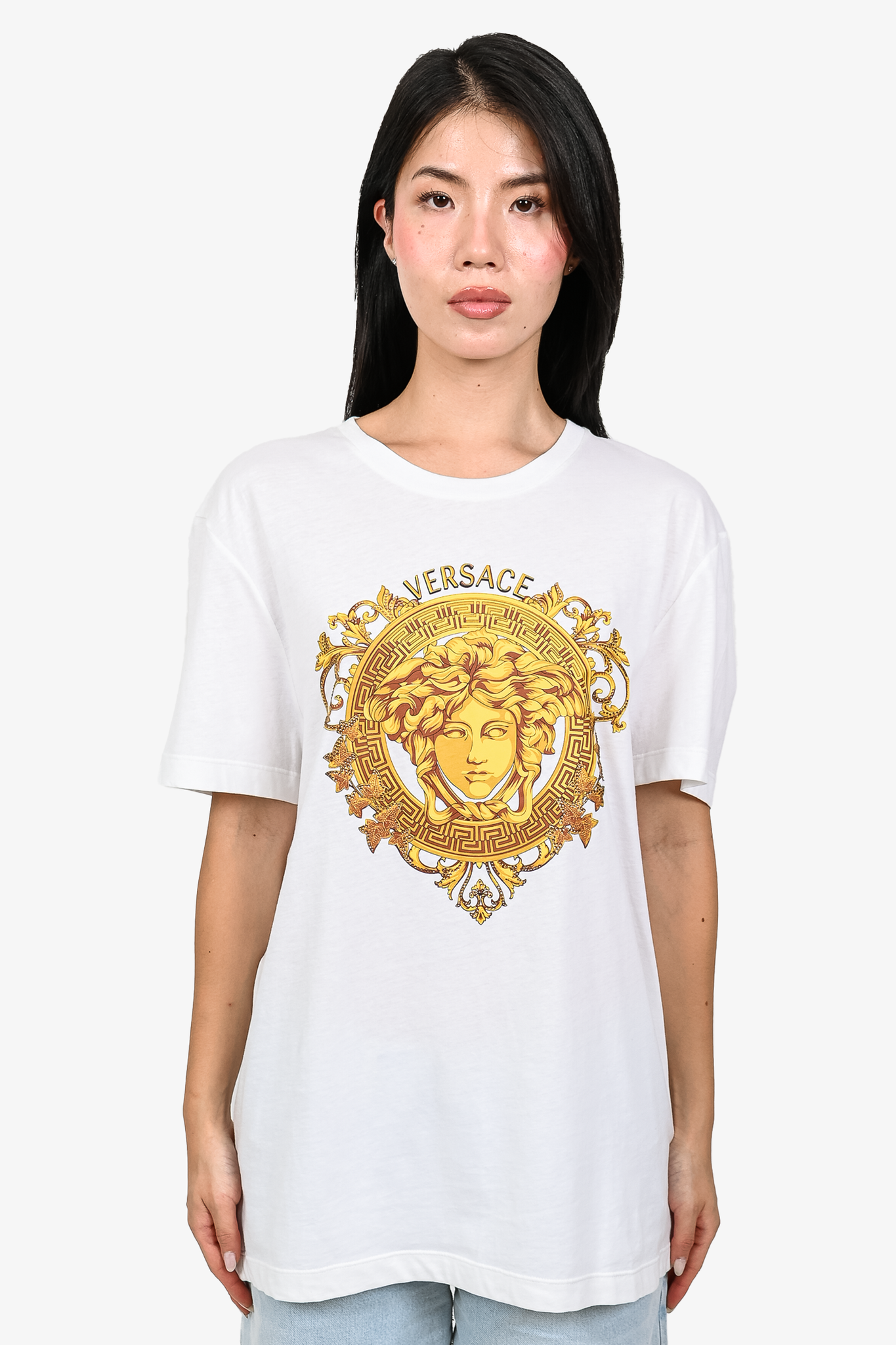 Versace Beige/Yellow Baroque Print Short Sleeve T-Shirt Size 40