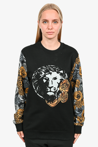 Versace Black/White Wool Long Sleeve Mock Neck Top Size 40