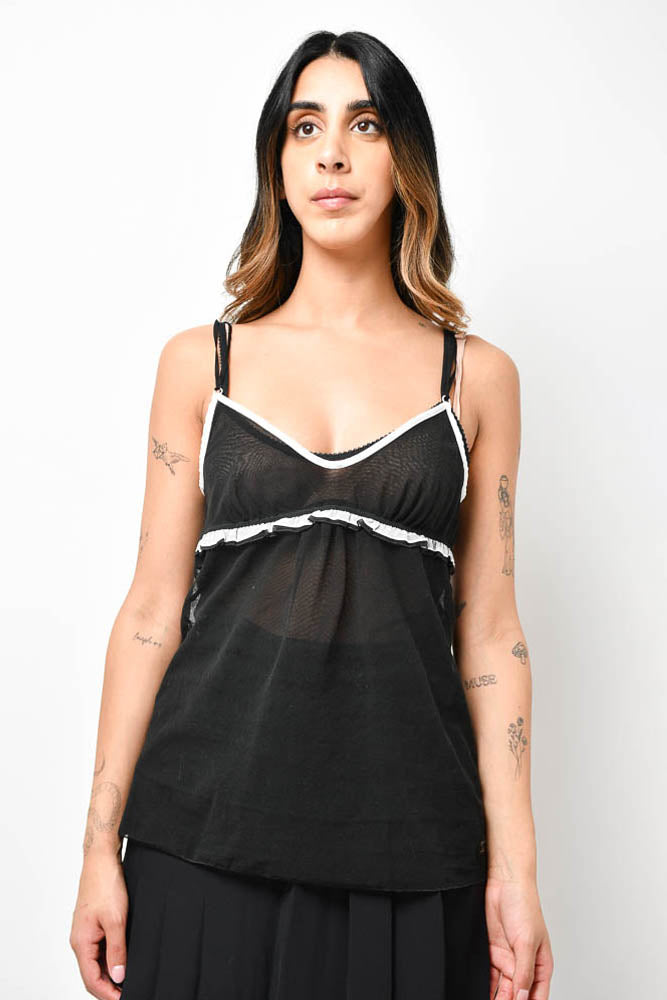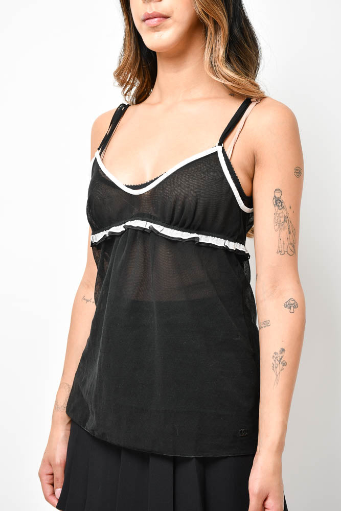 Pre-Loved Chanel™ 2002 Black White Stitched Button Back T-Shirt Size 40