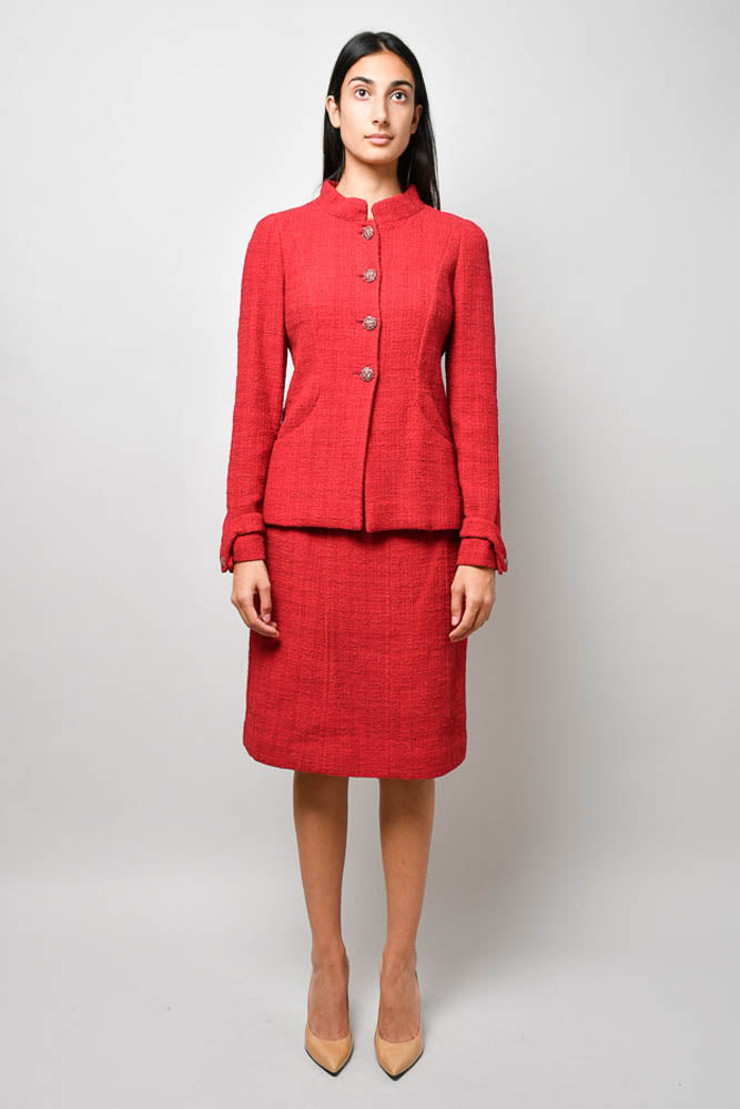 Pre-Loved Chanel™ Cream Wool Blazer Skirt Set Size 38