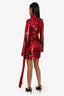 16 Arlington Red Long-sleeve Sequin Dress with Front Cut Out and Long Belt Size 10