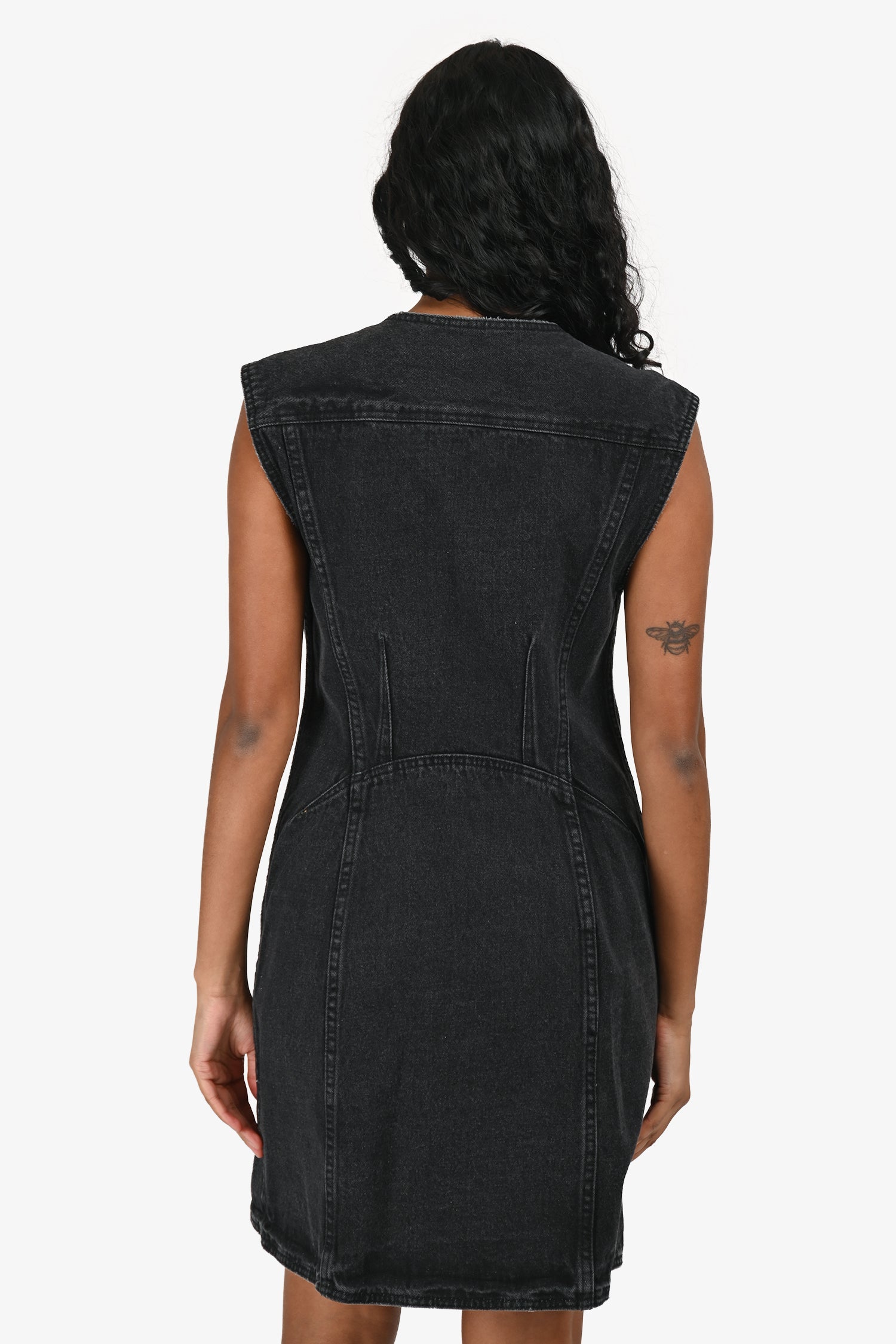 Refresh availability3.1 Phillip Lim Dark Grey Denim Button Down Sleeveless Midi Dress. Slip-on. Round neckline. Front zipper details. Unlined. Silver-tone hardware. Tonal stitching.